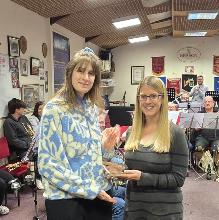 We have been incredibly fortunate to have ‘star percussionist’, Darcy Beck, in our band for the last 5 years and, in our last rehearsal, we formally thanked her with a little presentation in recognition of her contribution to the band as we wish her all the very best as she moves to join the The Cory Band.